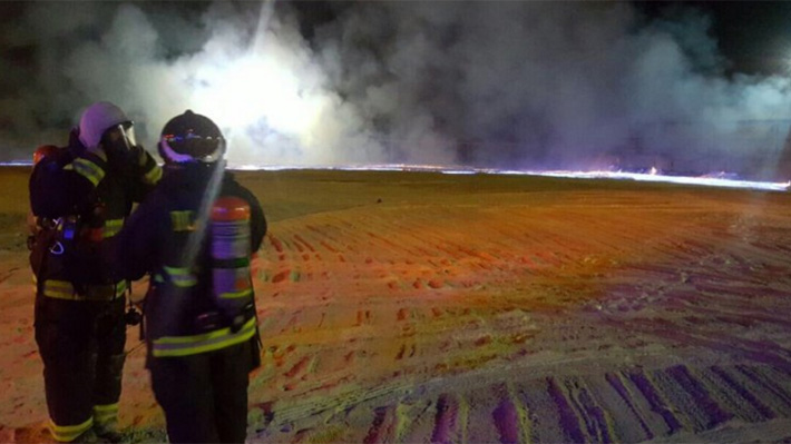 Según informó SoyChile.cl, el hecho fue provocado por una reacción química -que no puede ser contenida con agua- y alrededor de la medianoche, las llamas aún parecían incontrolables, lo que generó el corte de rutas.