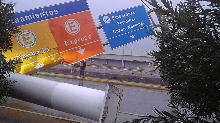 La concesionaria Nueva Pudahuel advirtió sobre posible atochamiento en el lugar. "El tránsito se está normalizando tras caída de letrero, pero recomendamos planear más tiempo", aseguró la empresa.