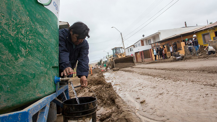 Los habitantes de esta zona del norte del país, que ya trabajan en la limpieza de sus casas que quedaron tapadas con lodo y sedimentos, han debido enfrentar esta situación con agua envasada y de camiones aljibes.