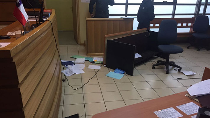 Fuentes del caso señalaron a Emol, que los desórdenes se iniciaron al término de una audiencia en la que el Ministerio Público comunicó al tribunal su decisión de no perseverar en la investigación de la denuncia que realizó uno de los líderes de la comunidad Temucuicui, Víctor Queipul Hueiquil.