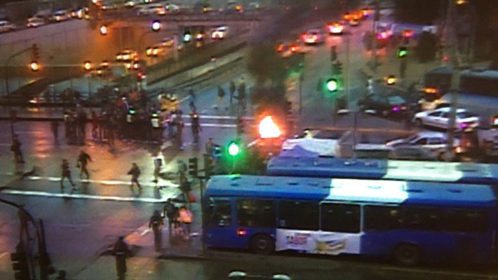 Personal de Carabineros llegó hasta la zona para despejar las vías y dispersar a los manifestantes.