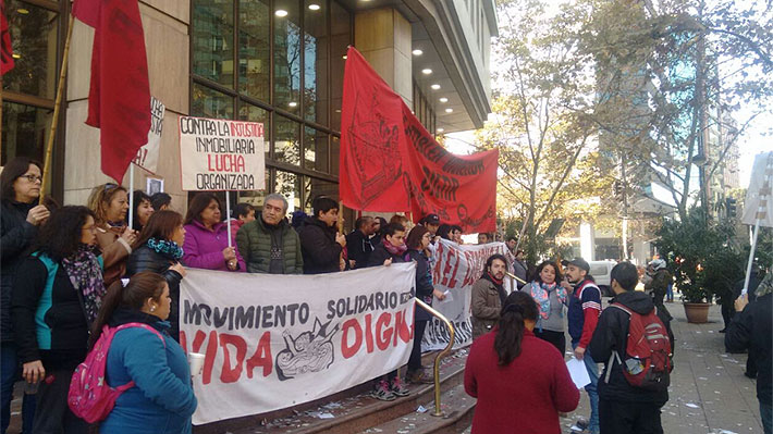 SANTIAGO.- Los movimientos "Asamblea Popular Estaciones Ferroviarias", "Solidario Vida Digna" y de "Pobladoras/es Vivienda Digna" ocuparon esta mañana el edificio de la Cámara Chilena de la Construcción (CChC) ubicado en Providencia en protesta por demandas habitacionales.
