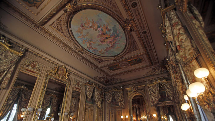 Adquirido en 1941 por la Municipalidad de Santiago, que lo convirtió en un museo, el Palacio Cousiño fue construido casi 70 años antes para la viuda de Luis Cousiño, empresario dueño de minas de plata y carbón e inversionista en compañías textiles y vitivinícolas.