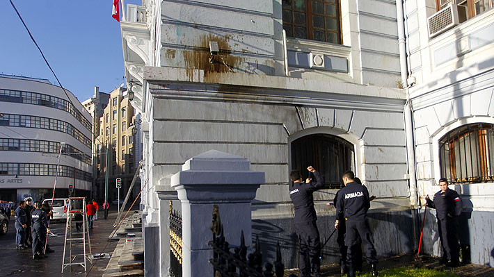 SANTIAGO.- Desconocidos atacaron este jueves, en la previa de la Cuenta Pública Presidencial, el edificio de la Armada en la ciudad de Valparaíso, lanzando pintura y aceite a la fachada.