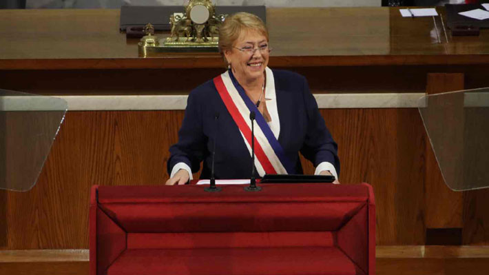 la Presidenta Michelle Bachelet durante su última Cuenta Pública ante el Congreso Pleno.