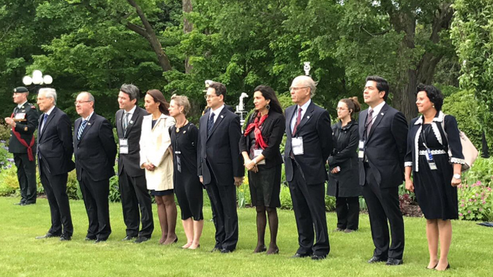 Mena (tercero de izq a der) es parte de la delegación que acompaña a la Presidenta.