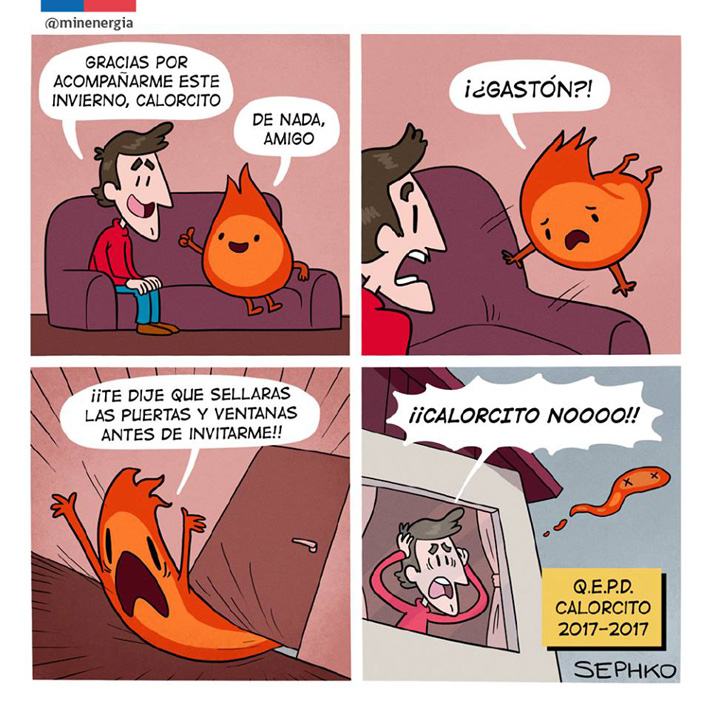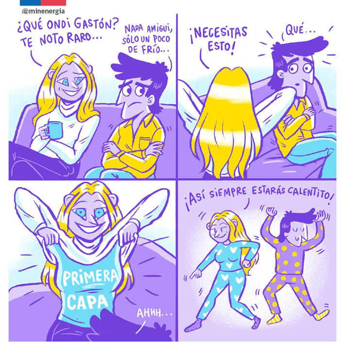 Por esta razón, el Ministerio de Energía lanzó la iniciativa "Invierno Calentito", en la que reunió a 10 reconocidos ilustradores chilenos para entregar de forma lúdica algunas recomendaciones para enfrentar el frío sin incurrir en una gran inversión.
