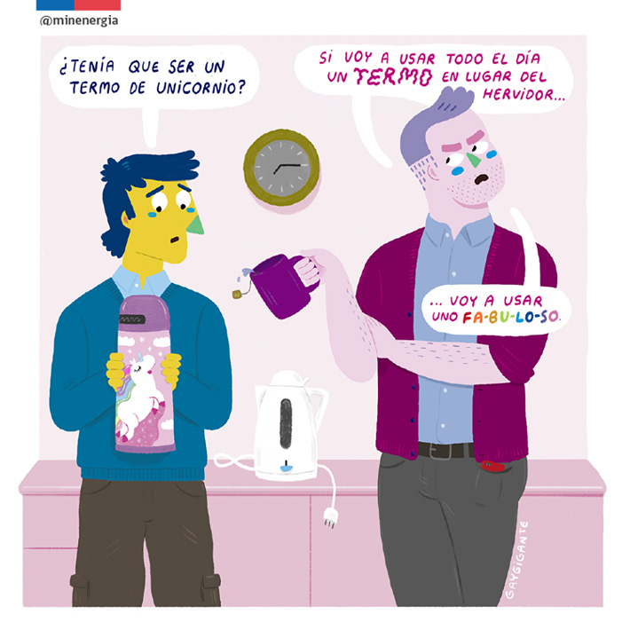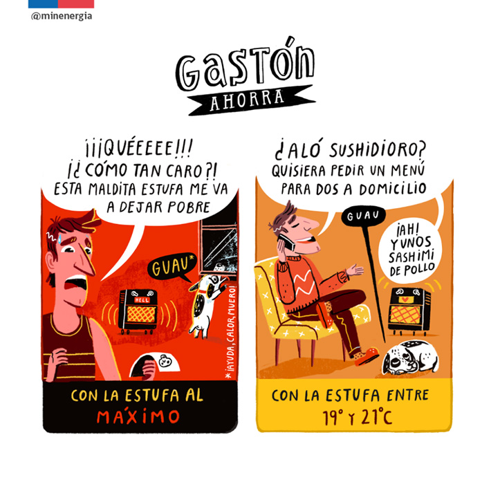 Para esto, incluyeron en sus ilustraciones a Gastón, el personaje del Ministerio de Energía, a quien se le enseñan diez formas de ahorrar energía sin pasar frío.