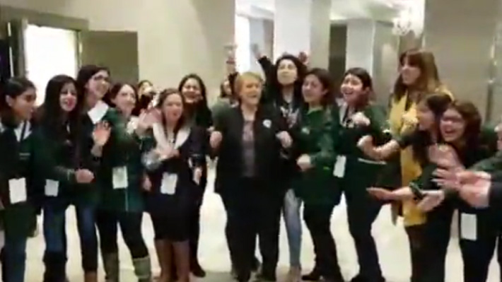 Tras una actividad con funcionarias de la fundación Integra, la Mandataria realizó un cehacheí de apoyo para la selección.