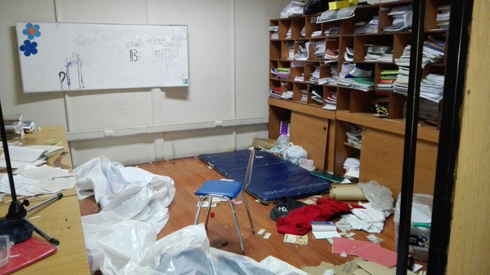 Así lo informó el alcalde de Santiago, Felipe Alessandri, quien detalló que la sala de matemáticas quedó destruida y se registraron daños en la sala de profesores, donde incluso había excremento en el suelo. También se hallaron rayados en las paredes, mobiliario dañado y libros de clase destruidos.