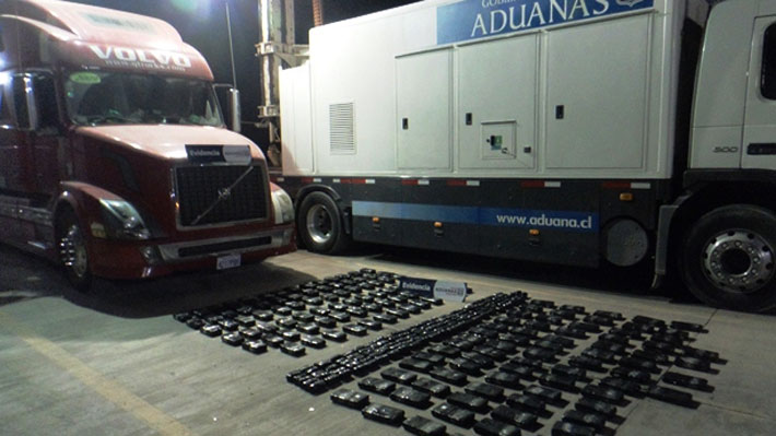 El director nacional (s) de Aduanas, Javier Uribe, explicó que los equipos aduaneros trabajan en base a gestión de riesgos y "en ese contexto se refuerzan los perfiles en determinadas situaciones y rutas específicas. En virtud de lo anterior, se dispuso una vigilancia y perfilamiento especial en todo el país y en Quillagua interceptamos el camión que llevaba 120 kilos 900 gramos de pasta base de cocaína y 81 kilos 950 gramos de clorhidrato de cocaína".