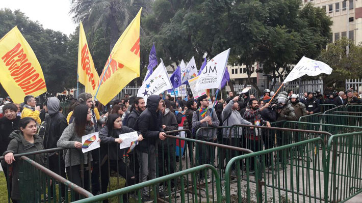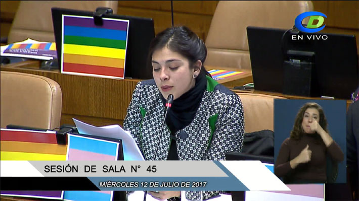 "Este es el Congreso Nacional, el lugar donde se discuten las ideas en democracia y por lo tanto, desde la cuna de la democracia, desde el lugar que representa a todos los chilenos, decimos no al odio, no a la discriminación", puntualizó.