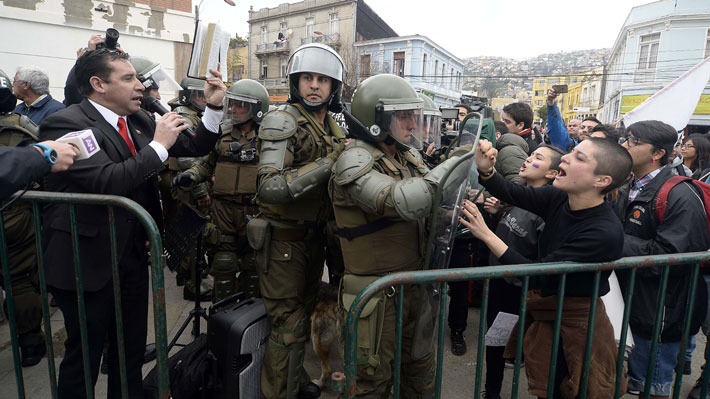 Al salir de la cita, el parlamentario se vio enfrentado por los manifestantes, quienes lo agredieron e insultaron. A su vez, Aranda y otros voceros del vehículo naranjo salieron a saludar a sus adherentes.