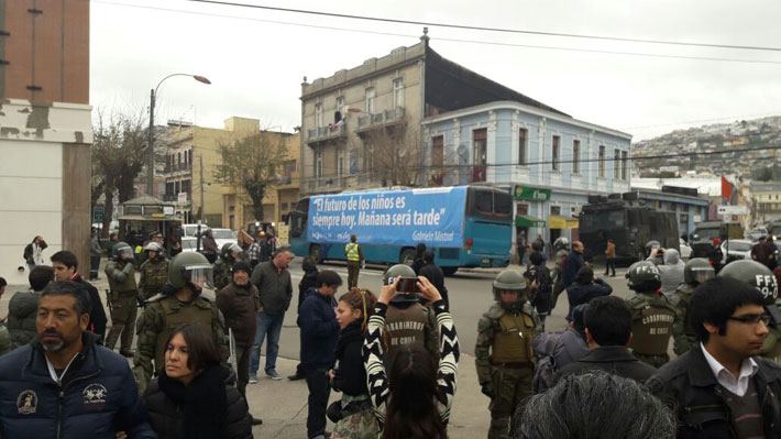 SANTIAGO.- Manifestantes a favor y en contra del "Bus de la Libertad" se congregaron esta mañana en el frontis del Congreso en Valparaíso a esperar al polémico vehículo naranjo contrario a la "ideología de género" que, tras dos jornadas recorriendo Santiago, llegó este miércoles a la ciudad porteña.