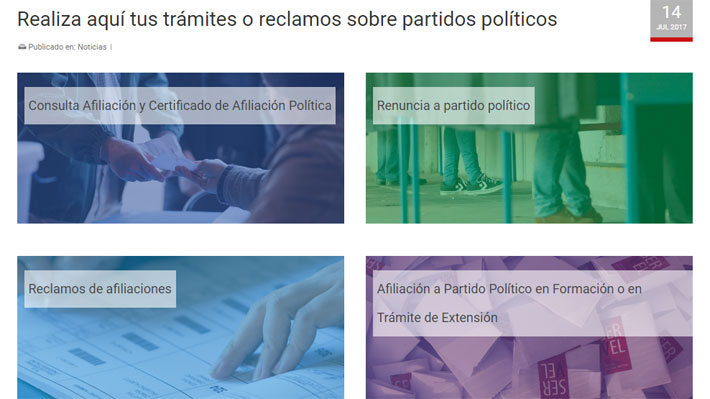 Entre los trámites que las personas podrán hacer a través del portal del servicio están el consultar la militancia política, pedir el certificado de afiliación política, renunciar a partidos e incorporarse a aquellos que están en formación o extensión a otras regiones.