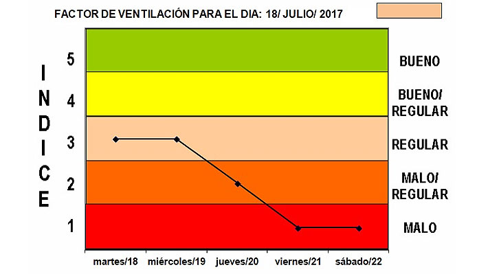 Según define el organismo, "el factor ventilación es una medida objetiva del potencial que tiene la atmósfera baja para dispersar en mayor o menor medida los contaminantes".