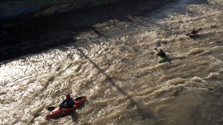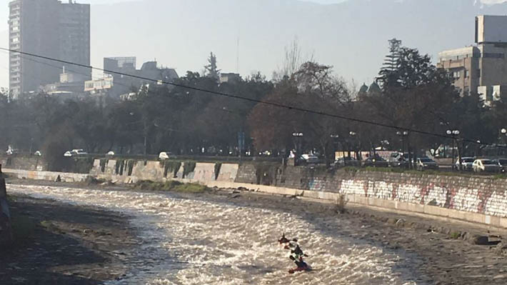 SANTIAGO.- Sorpresa causó la irrupción de tres kayakistas por el río Mapocho durante la mañana de hoy.