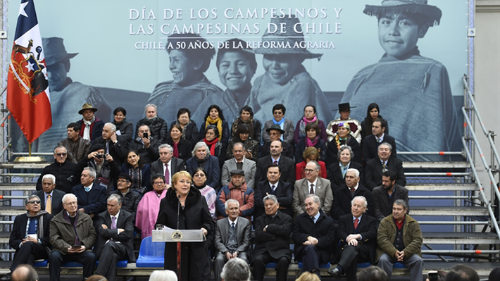 SANTIAGO.- La Presidenta Michelle Bachelet destacó este viernes la importancia histórica de la reforma agraria desarrollada en Chile hace 50 años, la cual calificó como la transformación más importante del país del siglo pasado, y recordó que la unidad de la DC con la izquierda fue fundamental para sacarla adelante.