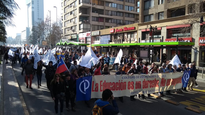 SANTIAGO.- Desde Plaza Italia por la Alameda comenzaron a marchar este jueves a eso de las 11:00 horas los docentes del país, en el marco del paro nacional convocado por el Colegio de Profesores para hoy.