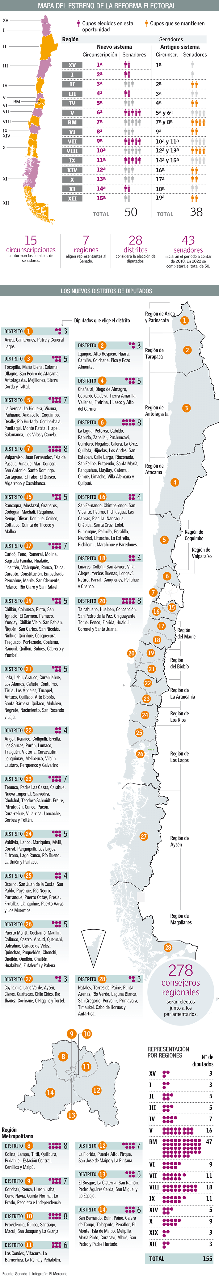 En las elecciones de noviembre se elegirán 155 diputados, y ninguna zona tendrá menos de tres ni más de ocho representantes. Mientras que para el Senado, actualmente con 38 miembros, irán en aumento hasta completar 50.