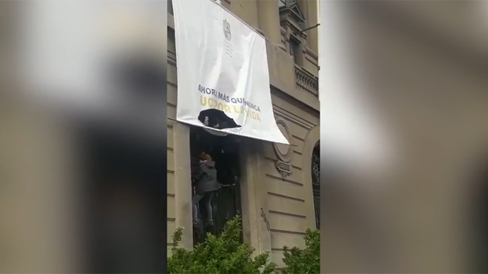SANTIAGO.- Una pareja de desconocidos rompió el lienzo contra el aborto colgado en el frontis de la Casa Central de la Universidad Católica, acción que ocurre tras la luz verde del Tribunal Constitucional a la iniciativa.