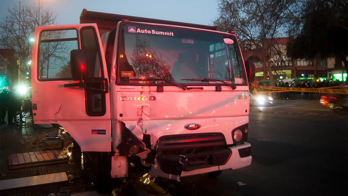 Al verse acorralado por la policía, el sujeto se lanzó del camión dejando al vehículo pesado sin conducción. La máquina se subió a la vereda embistiendo a 4 peatones y terminó chocando contra un poste.
