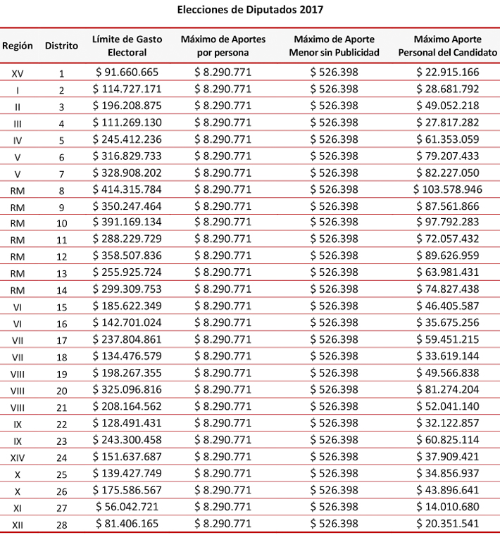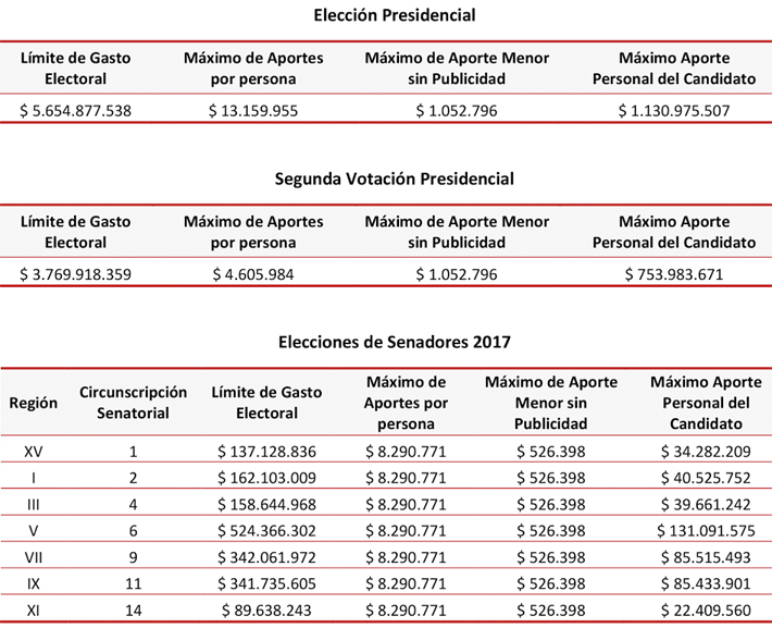 SANTIAGO.- El Servicio Electoral (Servel) determinó el monto máximo de aportes permitidos en las elecciones presidenciales y parlamentarias que se llevarán a cabo el 19 de noviembre de este año.