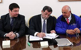 El subsecretario del Interior, Mahmud Aleuy, firmando el acuerdo que permite a los refugiados establecerse en el país.
