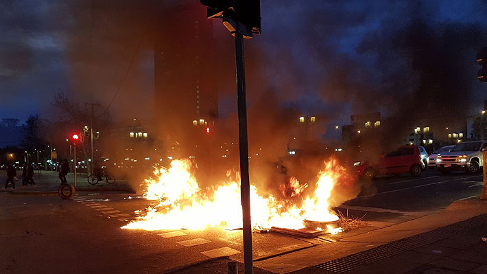 Personal de Fuerzas Especiales de Carabineros llegó hasta el lugar y las barricadas ya fueron apagadas.