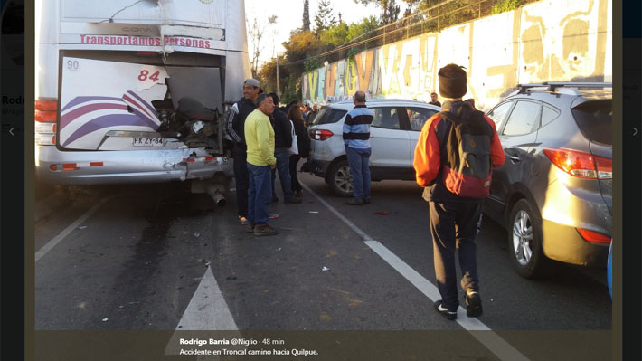 Según SoyValparaíso.cl, la colisión se produjo cerca de las 8:00 horas con dirección a la ciudad del interior de la región de Valparaíso y fue protagonizado por cuatro vehículos menores, una miro y dos buses.