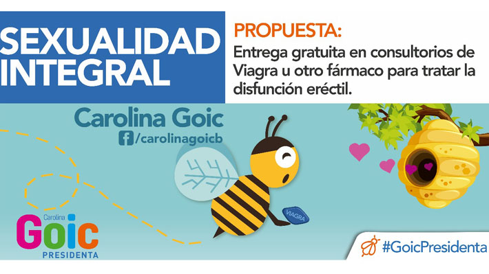 En ese marco, la abanderada falangista propuso la entrega gratuita en consultorios de Viagra o u otro fármaco similar para tratar la disfunción eréctil.