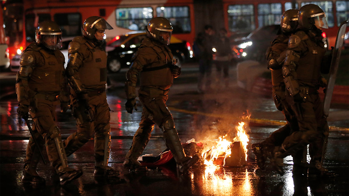 Al finalizar la manifestación, un grupo de descolgados interrumpió el tránsito por lo que personal de Fuerzas Especiales de Carabineros procedió a actuar con el carro lanzaguas y bombas lacrimógenas para dispersar a la protesta, ya que no contaban con autorización para marchar por La Alameda.
