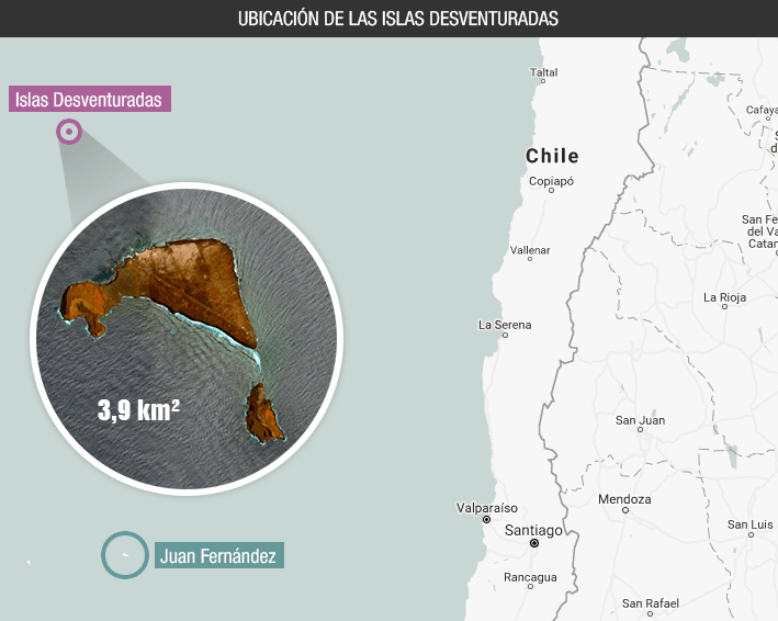 Pero, "para nuestra sorpresa -comentaron- un puntito verde surgió en nuestro mapa, a 850 kilómetros de distancia de la costa norte de Chile: las islas Desventuradas. Una de ellas, San Félix, alberga una pequeña pero estratégica base de la Armada. La otra isla, San Ambrosio, se encuentra deshabitada, excepto por un puñado de pescadores de Juan Fernández, que se desplazan estacionalmente para pescar langosta desde 1901".