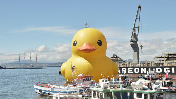 Según explicó la organización del evento de arte urbano, debido a las condiciones climáticas adversas, la Armada recomendó el retiro del pato, quien tenía programado estar en Valparaíso hasta el domingo.