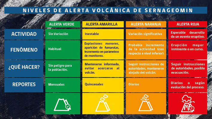 Iniciativa del Gobierno que se extenderá en todo el país y en la que se presentará un sitio alojado en www.sernageomin.cl, que contiene algunos conceptos como los tipos de alerta volcánica, una cronología multimedia, recursos audiovisuales descargables y preguntas frecuentes.