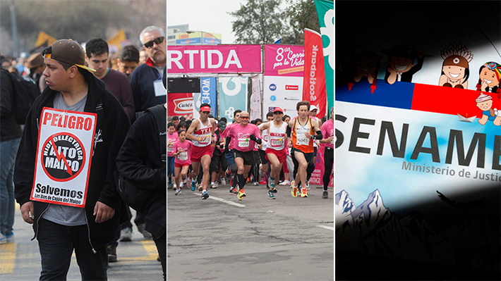SANTIAGO.- Una marcha por los niños y niñas del Sename, una movilización contra el proyecto hidroeléctrico Alto Maipo y la Corrida por la Vida, organizada por la corporación Yo Mujer son los tres eventos que mantendrán cerrada la Alameda durante gran parte de este domingo, por lo que las autoridades llamaron a la población a buscar alternativas de recorrido.