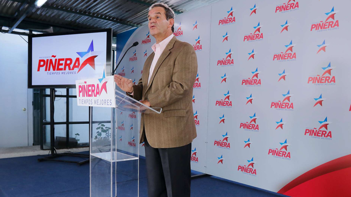 El senador Andrés Allamand (RN) durante una conferencia de prensa en el comando de Sebastián Piñera.
