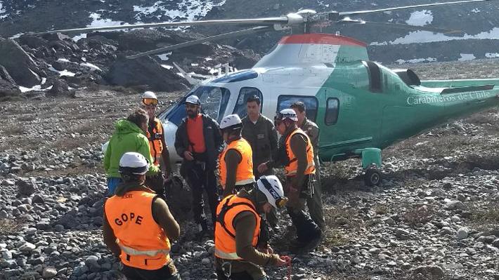 El cuerpo del estadounidense fue trasladado en un helicóptero de la Prefectura Aérea de Carabineros hasta el retén San Gabriel, donde será entregado al Servicio Médico Legal.