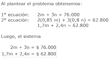 Inicialmente, al comprar dos pantalones (m) y tres poleras (n) iguales, dichos productos tenían un valor total de $ 76.000. En una liquidación de fin de temporada, a cada pantalón se le aplica un 15% de descuento y a cada polera un 20% de descuento, de modo que la misma compra de 2 pantalones más 3 poleras, tienen un costo de $ 62.800. ¿Cuál de los siguientes sistemas de ecuaciones permiten determinar el valor inicial de cada polera y cada pantalón?