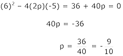 Dada la ecuación de segundo grado en x, 2px2 + 6x – 5 = 0, si sus soluciones son reales e iguales, entonces p debe cumplir que