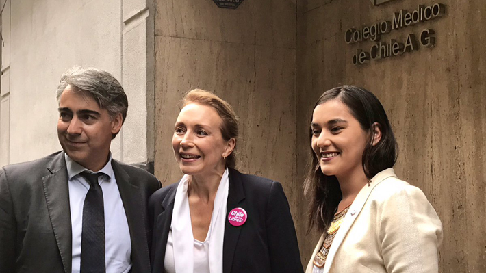 El candidato junto a su esposa Karen Doggenweiler y la presidenta del gremio, Iskia Siches.