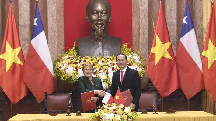 Bachelet se reunió con el Presidente de Vietnam, Tran Dai Quang.