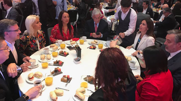 En un principio, el candidato de Chile Vamos ingresó directo hacia el salón donde se celebraría la ceremonia sin saludar a su oponente del bloque "La Fuerza de la Mayoría", pese que pasó por su lado. Piñera iba acompañado de la gerenta general de medios de Copesa, la ex ministra Carolina Schmidt.