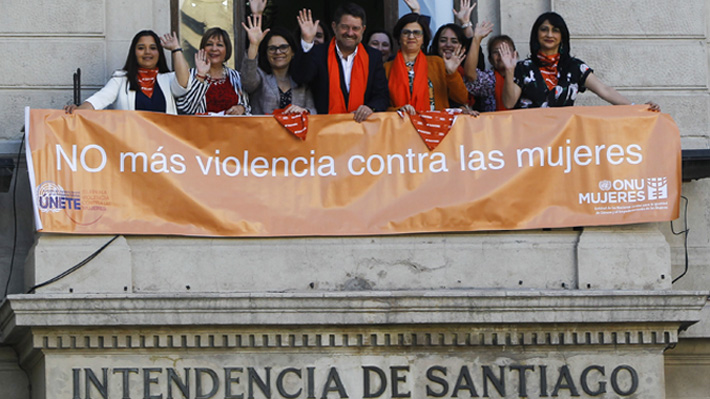 Esta mañana la ministra de la Mujer, Claudia Pascual, junto con el intendente metropolitano, Claudio Orrego y representantes de ONU Mujeres izaron una bandera "naranja" en el edificio de la Intendencia.