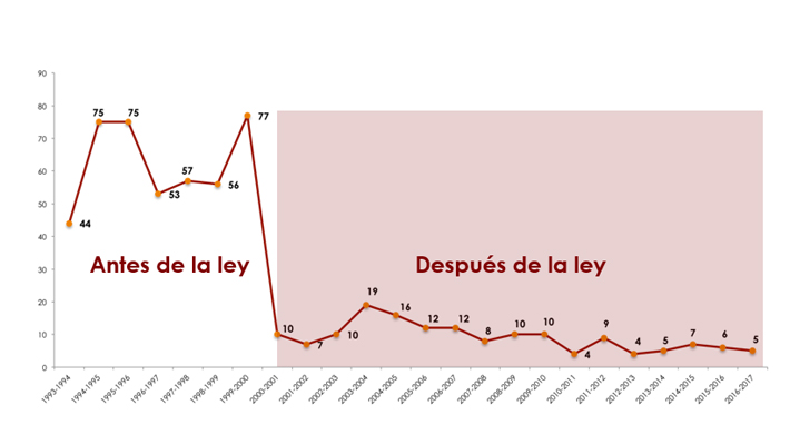 Esta alza puso en alerta a la entidad, que intensificó la campaña contra el uso de esos elementos y se reforzó la fiscalización. Con todas esas medidas, la cifra volvió a bajar y en el último año sólo se registraron cinco casos, uno menos que la temporada anterior.
