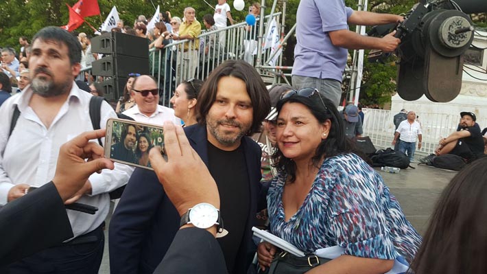 A penas llegó al cierre de campaña de Alejandro Guillier, la presencia del ex precandidato presidencial del Frente Amplio llamó la atención de los asistentes.