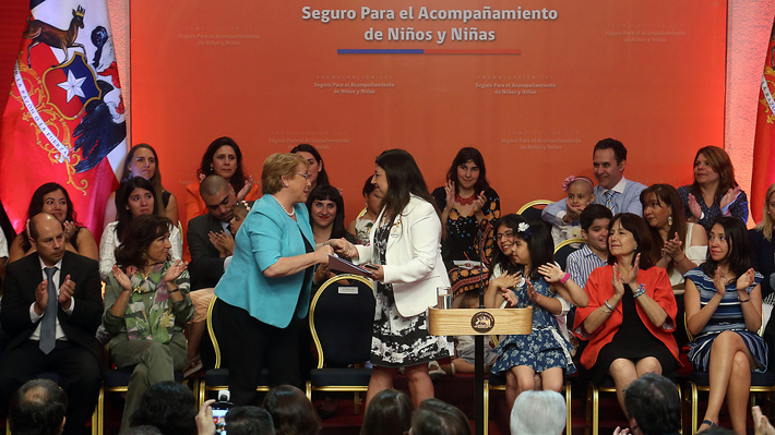 "Se trata de un seguro obligatorio, solidario y contributivo que se financiará con una cotización muy pequeña que pagan actualmente los empleadores. Es decir, esto no significa un nuevo aporte, sino redestinar los recursos", explicó la Mandataria durante la ceremonia de promulgación realizada en el Palacio de La Moneda.