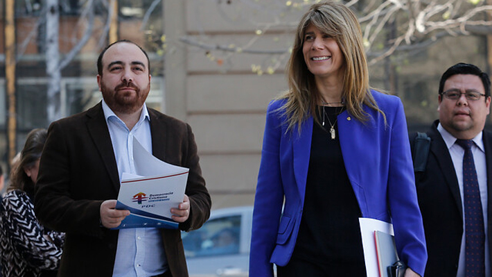 Fuad Chahín junto a la senadora Ximena Rincón hoy al entregar una carta en el Palacio de la Moneda.