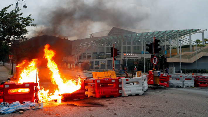 Los participantes irrumpieron en el terminal instalando barricadas en algunos puntos de acceso al Terminal 1, pero minutos después fueron desalojados por la policía local, según testigos del 'Hong Kong Free Press'.