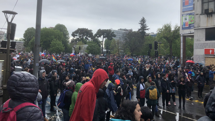 Pese a la lluvia, manifestantes se congregan en las calles de Concepción.